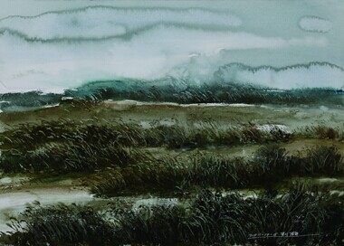 ??? 該詩通過對古原上野草的描繪,抒發(fā)惜別之情。“離離”描寫了春草的茂盛?!翱輼s”,指原上野草秋枯春榮,歲歲循環(huán),生生不已,表現(xiàn)了頑強的生命力,也刻畫出春草蔓延,綠野廣闊的景象,“古道”“荒城”又點出惜別的本意,水乳交融,意境渾成。而藝術(shù)家周利群的作品正是喜歡表現(xiàn)這類綿綿不盡的萋萋野草彌漫原野的情景,畫景抒情。只是他的畫不是對友情的惜別,而是感嘆現(xiàn)代文明對歷史與古老文明的沖蝕,其內(nèi)心的依依惜別與喟嘆之意充塞胸臆。
