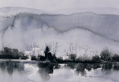 ??????? 不同的風景事實上也就意味著不同的認同,意味著分離和旁觀,也意味著表現(xiàn)和敘述,折射著對于歷史的不同訴求。那么,面對現(xiàn)代文明對傳統(tǒng)文化的無情吞噬的現(xiàn)實情境,藝術(shù)家周利群筆下的風景就是對這種現(xiàn)實情境的一種不認同。因為,所有的風景背后都是人,任何景觀的含義都是人賦予的。正如溫迪·J·達比所言:其中必然涉及到誰有權(quán)控制、利用、表征、再現(xiàn)、改造這些風景。我們所到的任何一處風景,它所展示給我們的含義,都來自于背后這個交織在一起的話語——對此的反思之所以如此重要,是因為我們?nèi)魏稳松钤谄渲械目臻g都是雙重的:它既是一個地理空間,又是一個意義系統(tǒng)編織起來的空間。哪怕是無人的風景……(【美】溫迪·J·達比:風景的認同,譯林出版社,2011。)通覽這個展覽,我們或許能從這些“無人的風景畫”感受到藝術(shù)家周利群的感覺與敘述——對離原對山鄉(xiāng)的反復游觀與體驗,無疑使他具備了以上論述的那種歷史歸屬感以及經(jīng)驗性的集體記憶。
