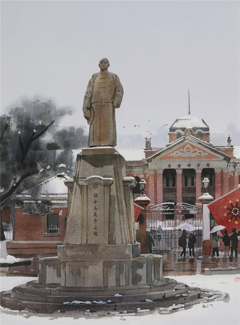 ?? “武漢?印象”通過“紀念建國60周年”、“百年老房子”、“紀念辛亥革命100周年”、“城市樂章”等多個主題來呈現(xiàn)武漢這座歷史名城在百年中的歷史變遷,借助畫家的畫筆展示出本地的社會文化景觀。參展畫家們以不同的藝術(shù)形式表達了對武漢的理解與熱愛,藝術(shù)地再現(xiàn)了江城獨具特色的自然風光美、人文內(nèi)涵美,其中既包括對歷史老建筑、貨運碼頭的再現(xiàn),也包括對歷史場景、現(xiàn)代生活的意象表達,這些都是對歷史和文化積淀的紀念。江城的獨特個性,通過這種藝術(shù)的方式被留存了下來。