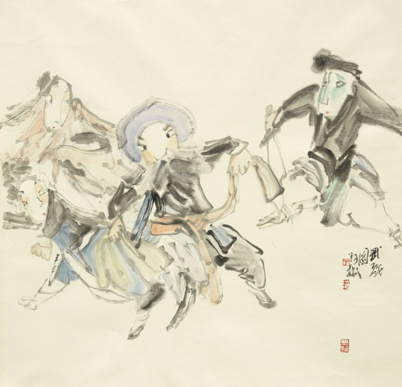 ??? 中國(guó)傳統(tǒng)繪畫語(yǔ)境中的“用筆”強(qiáng)調(diào)“用”的人、“用”的過(guò)程、“用”的方式。三位一體才能生發(fā)出具有文脈價(jià)值的“用筆”二字。這在西方是沒(méi)有的,因?yàn)樗臀鞣剿f(shuō)的“筆觸”完全不同。筆桿細(xì)長(zhǎng)、筆頭層次分明的毛筆作為中國(guó)傳統(tǒng)的書寫與繪畫工具,在一定程度上決定了畫家要充分利用毛筆的“尖”、“腹”、“根”以及筆頭的彈性,有效地控制筆頭攪轉(zhuǎn)并采取“按、摁、扭、轉(zhuǎn)”在宣紙上形成不同的點(diǎn)、線,進(jìn)而組成畫面內(nèi)容。畫家通過(guò)中、側(cè)鋒之運(yùn)筆,畫出“象物”的線條,且不談?dòng)霉P畫出的線條的形體,這些線條的組織與書寫、穿插與速度均可以折射其畫家喜怒哀樂(lè)及其對(duì)事間萬(wàn)物的理解與詮釋。并且隨著中國(guó)畫的發(fā)展,歷代畫家對(duì)于筆、墨、水之間的不斷試驗(yàn),將“線條”的可能性發(fā)揮到最大。以至于梁楷之簡(jiǎn)筆畫中,寥寥幾筆便真意、生氣盡顯!正可謂“真畫一劃,見(jiàn)其生氣。(張彥遠(yuǎn)《論顧陸張吳用筆》)”雖說(shuō)在這類作品中,墨色占據(jù)畫面絕大部分,但在筆與墨的關(guān)系中,筆實(shí)則起主導(dǎo),墨隨筆出。