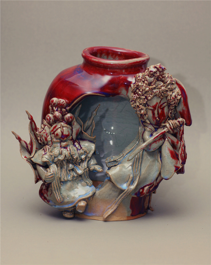 陶藝的類(lèi)別較為豐富,傳統(tǒng)瓷器的溫潤(rùn)柔和傳遞著皇家觀(guān)賞的審美趣味,而陶器粗糙厚重的質(zhì)感則在民間的土壤中找到了藝術(shù)的生命力。任何藝術(shù)都來(lái)源于最原始的采集,當(dāng)代藝術(shù)從架上延伸到了社會(huì)生活的各個(gè)領(lǐng)域,來(lái)自民間的剪紙藝術(shù)、皮影戲等給當(dāng)代藝術(shù)帶來(lái)很大的啟示,陶藝更加理所當(dāng)然地應(yīng)該進(jìn)入當(dāng)代的語(yǔ)境中。對(duì)于傳統(tǒng)的馬口窯陶藝來(lái)說(shuō),當(dāng)代審美的拓展和寬容開(kāi)放的創(chuàng)作環(huán)境是一次重新開(kāi)發(fā)的契機(jī),時(shí)代變遷所產(chǎn)生的空間隔絕則使藝術(shù)本體產(chǎn)生了對(duì)更新和轉(zhuǎn)化的訴求。