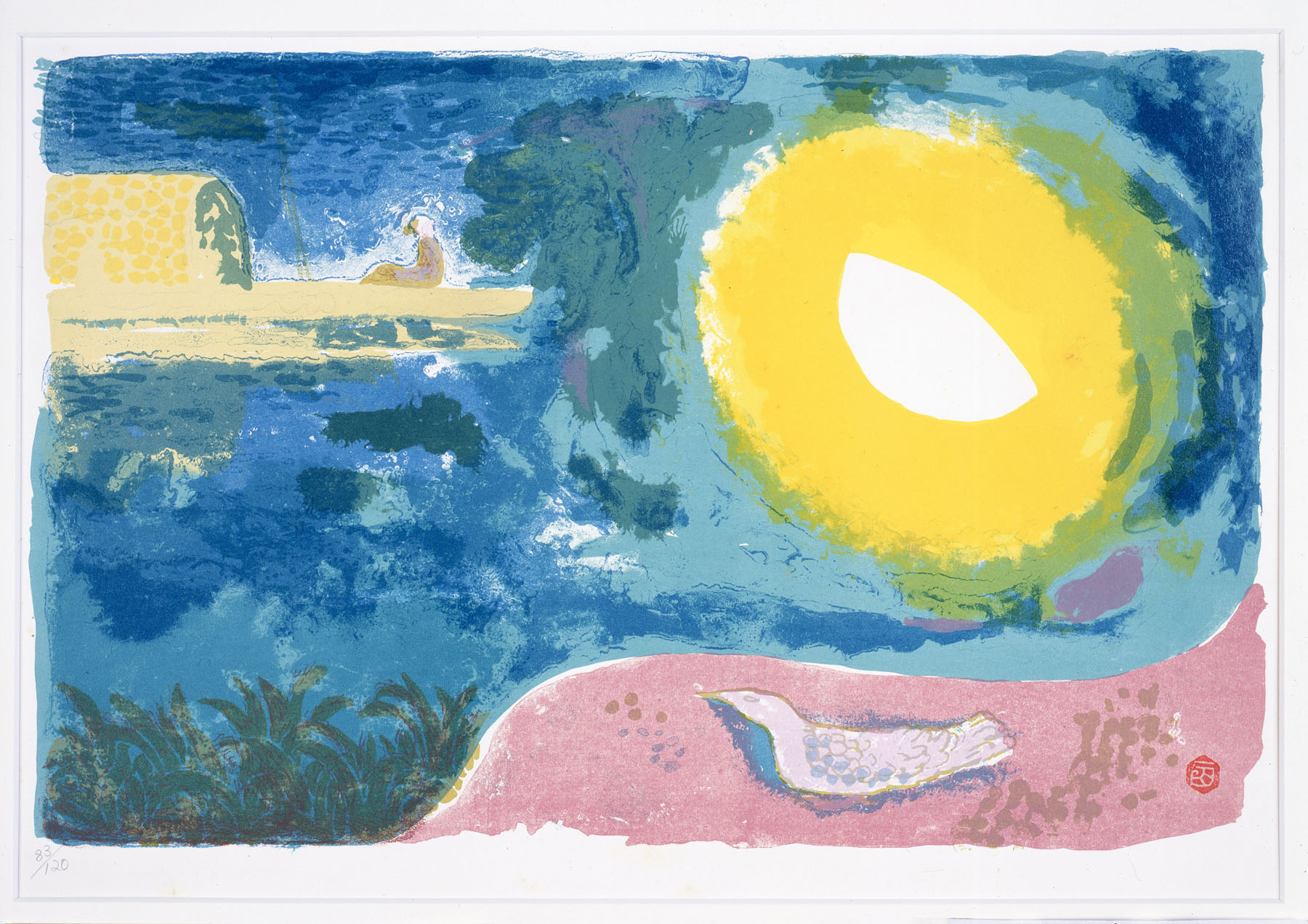 此次大分市美術(shù)館到武漢美術(shù)館展出的106幅優(yōu)秀館藏版畫作品,主要由唐詩選系列、圣家族、源氏物語、日月星辰、玄乃玄等七個系列組成,題材橫跨中西方,反映了高山辰雄對中西方傳統(tǒng)文化不同側(cè)重點的喜愛。本次展覽的主題是“無邪之思”,“無邪”是指中和雅正,是詩的最高標準,這也正反映了高山辰雄那種帶著現(xiàn)實的鎖鏈但又不斷追求如孩童般天真自由地遨游于太空的態(tài)度,其作品滲透出來的文化情懷,是一種無法用話語表達的視覺之詩。
