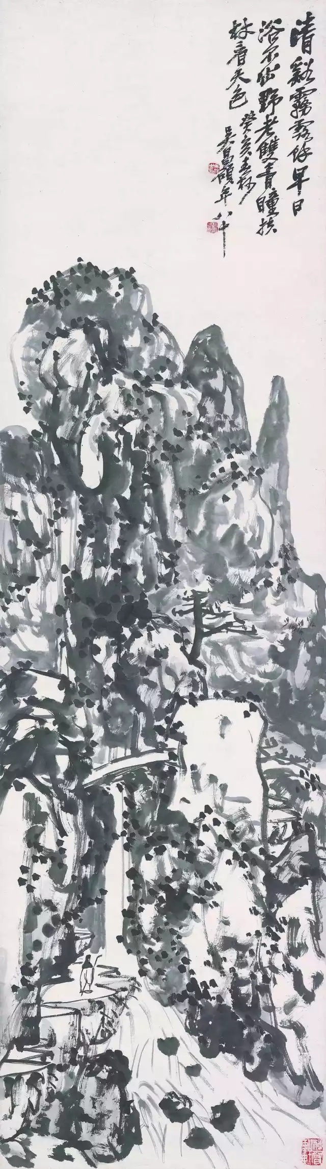 ????? 吳昌碩是二十世紀(jì)初中國(guó)書(shū)畫(huà)的集大成者,也是在書(shū)畫(huà)印以及詩(shī)文諸領(lǐng)域齊頭并進(jìn)、開(kāi)宗立派的人物。吳昌碩的出現(xiàn),改變了以往中國(guó)書(shū)畫(huà)的筆法傳統(tǒng),他以更加個(gè)性化的筆法來(lái)改造傳統(tǒng)書(shū)畫(huà)印,使作品表現(xiàn)出一種陽(yáng)剛、渾厚的審美意境??梢哉f(shuō),吳昌碩的“金石入畫(huà)”、“古人為賓我為主”、“苦鐵畫(huà)氣不畫(huà)形”等實(shí)踐和理論主張影響和啟發(fā)了后來(lái)的齊白石、黃賓虹、潘天壽、沙孟海等一大批中國(guó)書(shū)畫(huà)的實(shí)踐者,時(shí)至今日,吳昌碩依然是后來(lái)者不斷學(xué)習(xí)和研究的對(duì)象。