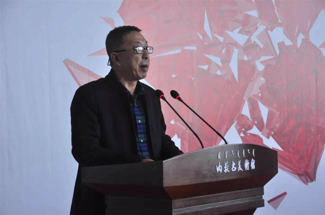 △內(nèi)蒙古自治區(qū)文聯(lián)副主席、內(nèi)蒙古美術(shù)家協(xié)會主席董從民先生在開幕式上致辭