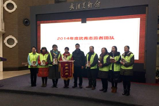 2015年1月31日下午,2014年度志愿者表彰大會(huì)在武漢美術(shù)館中庭順利召開(kāi)。根據(jù)《志愿者章程》及《志愿者活動(dòng)記錄表》對(duì)志愿者進(jìn)行考核,本屆表彰大會(huì)共表彰優(yōu)秀志愿6人,特殊貢獻(xiàn)志愿者2人,優(yōu)秀志愿者團(tuán)隊(duì)1個(gè)。