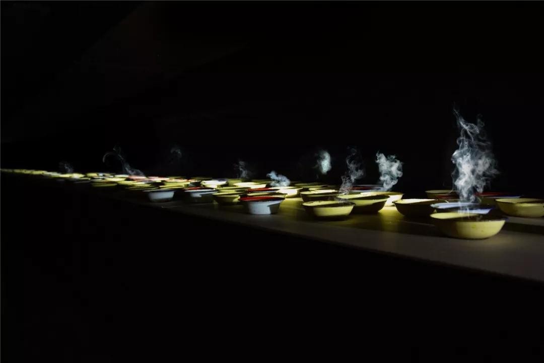同時在展廳頂部安置水箱,水箱里的水是我從長江里取過來的。滴落的江水,在與飯盆接觸的瞬間蒸發(fā)成氣體,現(xiàn)場彌漫著長江的味道。