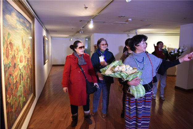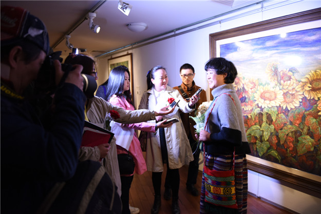 “我亦花來花亦我,夢幻花間,結(jié)伴和春駐”。 這是畫家龔華婭百花作品集中的詩句, 表達了她二十多年求道丹青, 追求畫外之味, 象外之意, 景外之趣的有聲畫, 無聲詩。本次展覽展出了她創(chuàng)作的重彩畫百花作品近60幅,彩墨華滋,生氣沛然,每幅畫都配上她自己寫的詩詞,行云流水,詩情畫意。使人感覺如沐浴春天的陽光,既天性又充滿變化。