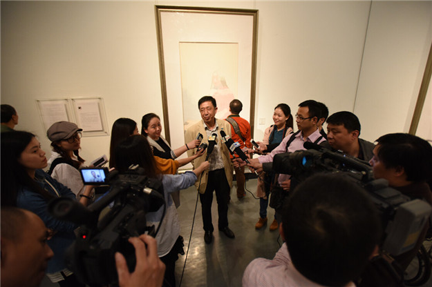 開幕式結(jié)束后,策展人及到場的參展藝術(shù)家在展廳內(nèi)與現(xiàn)場觀眾進(jìn)行互動,為其導(dǎo)覽本次展覽作品,解答水墨藝術(shù)方面的問題。