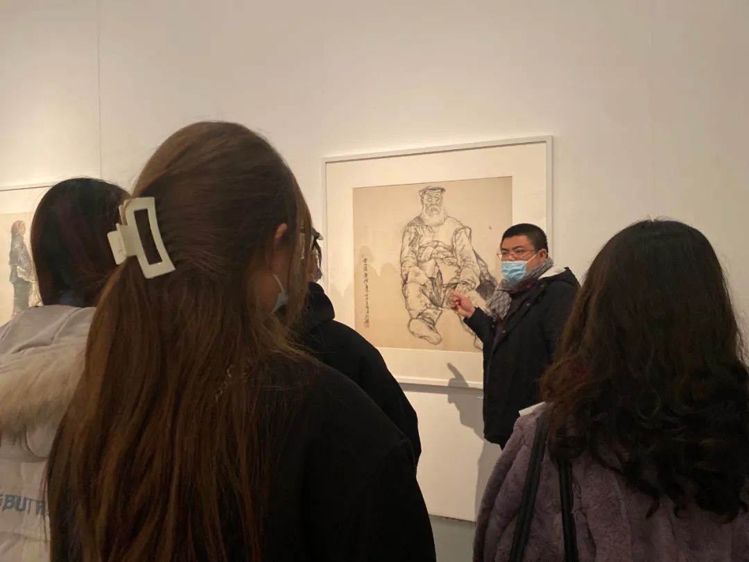 “展覽應(yīng)該看什么、該怎么看?”、“藝術(shù)家的風(fēng)格欣賞與研究不僅在于眼前的作品......”在導(dǎo)覽過(guò)程中,張文博先生鼓勵(lì)同學(xué)們從多方面研究展覽要素,從展覽標(biāo)題、展品介紹、展覽畫(huà)冊(cè)和實(shí)際的觀展體驗(yàn)入手,由點(diǎn)到面,融會(huì)貫通地感受藝術(shù)家的創(chuàng)作表現(xiàn),發(fā)現(xiàn)藝術(shù)家內(nèi)心世界的新舊程式語(yǔ)言與個(gè)人藝術(shù)風(fēng)格的連接,拓展了同學(xué)們的看展思路。