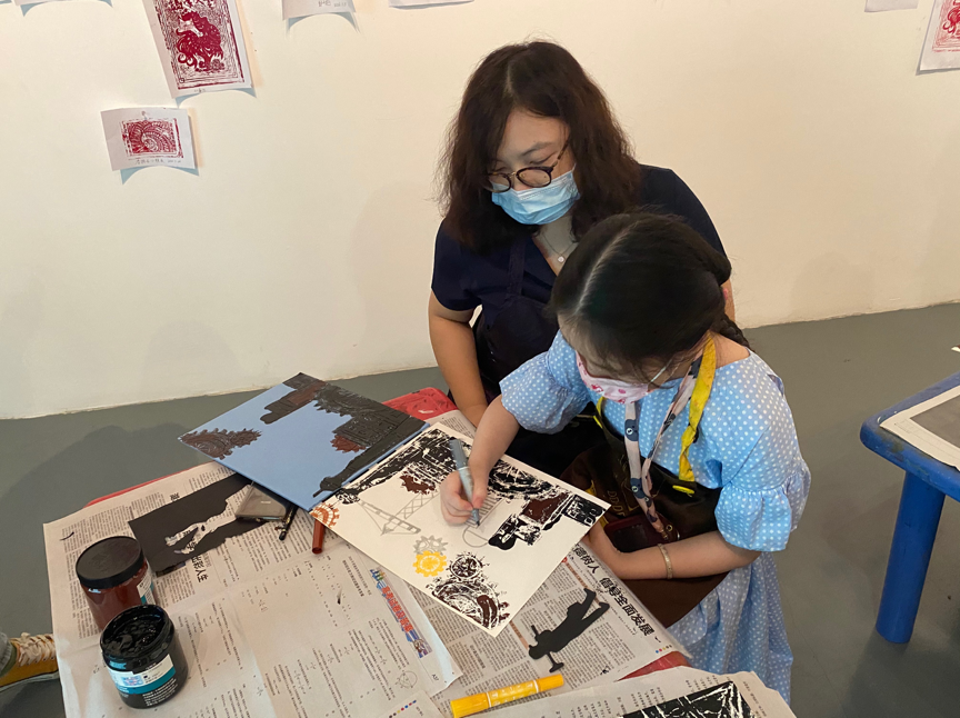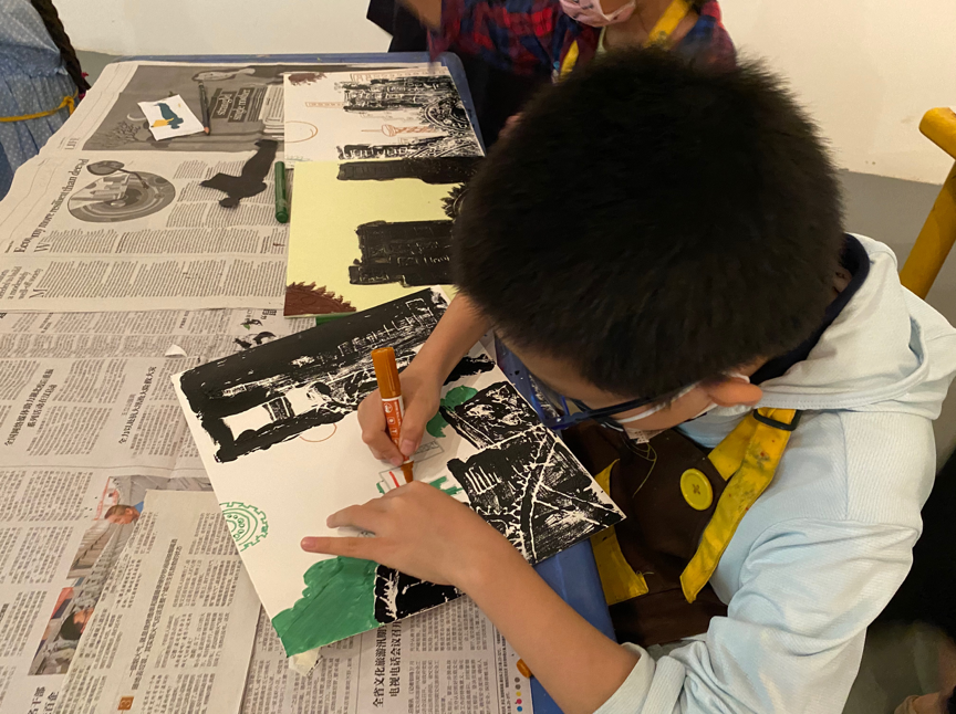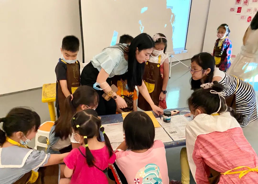 ? ? ? ? 武漢美術(shù)館暑期公教活動(dòng)少兒粉印版畫—工業(yè)時(shí)代的現(xiàn)場(chǎng)課前,這群可愛的“小藝術(shù)家”們就迫不及待滴想要嘗試一下奇妙的粉印版畫工具。由于制作粉印版畫需要使用到小竹簽等帶有尖頭的工具,我們的老師細(xì)心提醒“小藝術(shù)家”們?cè)趧?chuàng)作過程中需要注意安全?;顒?dòng)結(jié)束后,小朋友們帶著自己的作品和歡快的心情,在展廳的展示區(qū)一起合影留念。