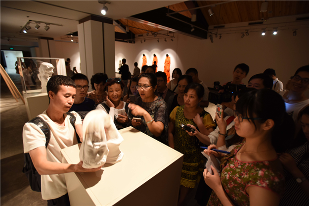7月24日下午,“巢——跨國(guó)文化雕塑裝置影像展”在我館舉行了開(kāi)幕活動(dòng),展覽策展人劉婷參展藝術(shù)家德國(guó)雕塑裝置家沃爾夫?qū)?斯蒂勒,法國(guó)裝置藝術(shù)家弗雷德里克?雷塞佛,中國(guó)紙雕藝術(shù)家李洪波,武漢留法攝影師田原,出席了開(kāi)幕活動(dòng),并在展廳內(nèi)與到場(chǎng)觀眾進(jìn)行了交流。