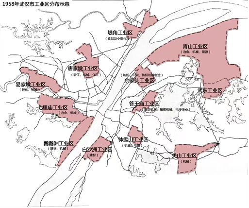 圖4武漢1958年工業(yè)區(qū)分布示意圖