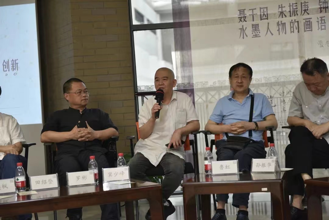當(dāng)天上午十點(diǎn),在武漢美術(shù)館四、七號(hào)展廳之間,舉辦了一場以“當(dāng)代水墨人物畫的語言創(chuàng)新”為主題的學(xué)術(shù)研討會(huì),由本次展覽策展人荊菲女士擔(dān)任主持人。