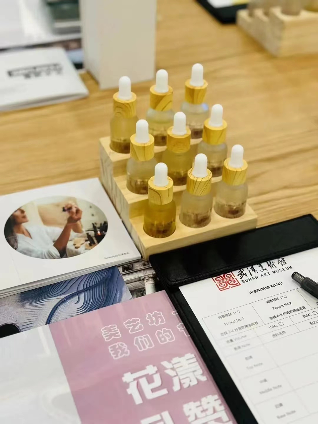 觀展結(jié)束后,武漢美術(shù)館給女警們準(zhǔn)備了一份特別驚喜。邀請專業(yè)調(diào)香師帶領(lǐng)大家調(diào)制節(jié)日專屬香氛,制作玫瑰造型的別致擴香擺件。