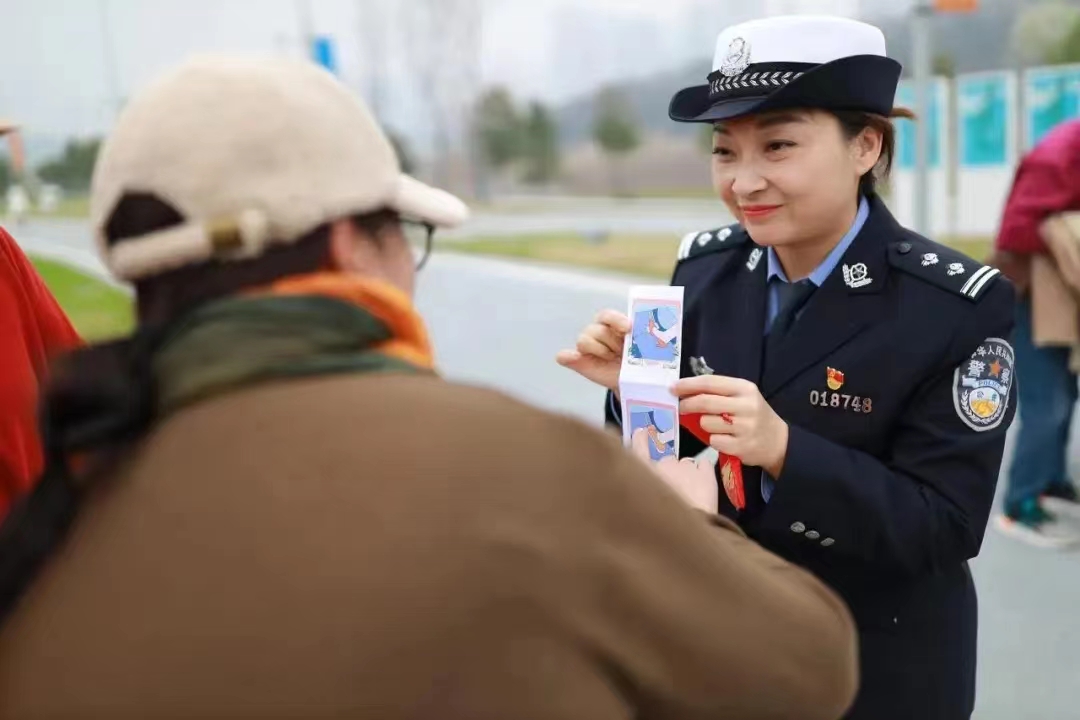 活動最后,江岸區(qū)交通大隊女警張慧為美術(shù)館的女性觀眾們送上了“女性交通安全錦囊”及交通安全主題宣傳文創(chuàng)。