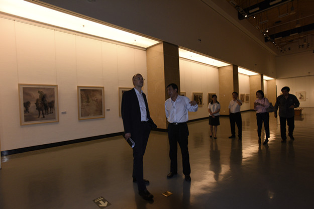 5月25日下午,北京德國文化中心?歌德學(xué)院院長柯理博士、中國區(qū)域聯(lián)絡(luò)合作部負(fù)責(zé)人解開縉女士一行到我館參觀交流,我館館長樊楓、副館長劉宇、藝術(shù)總監(jiān)高小林、辦公室主任劉永茜接待了到訪人員。在我館人員的陪同下,柯理院長、解開縉女士參觀了正在我館展出的“2015’2016深圳國際水彩雙年展”,了解了即將開展的“萌芽?全國少兒美術(shù)作品展”布展工作,對我館的展覽及環(huán)境表示贊賞。