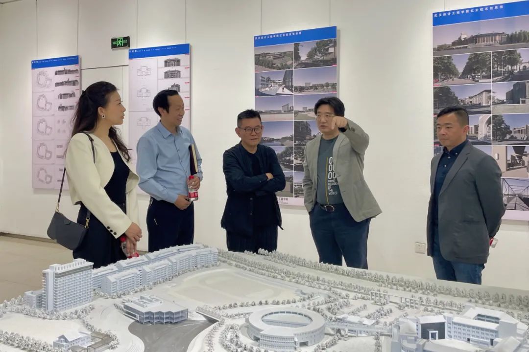 武漢設(shè)計(jì)工程學(xué)院董事長(zhǎng)程凡、名譽(yù)校長(zhǎng)傅中望、校董事魏彬等校領(lǐng)導(dǎo)帶領(lǐng)武漢美術(shù)館一行參觀校園,詳細(xì)介紹了校園建筑、教學(xué)設(shè)施、專業(yè)特色等方面內(nèi)容。