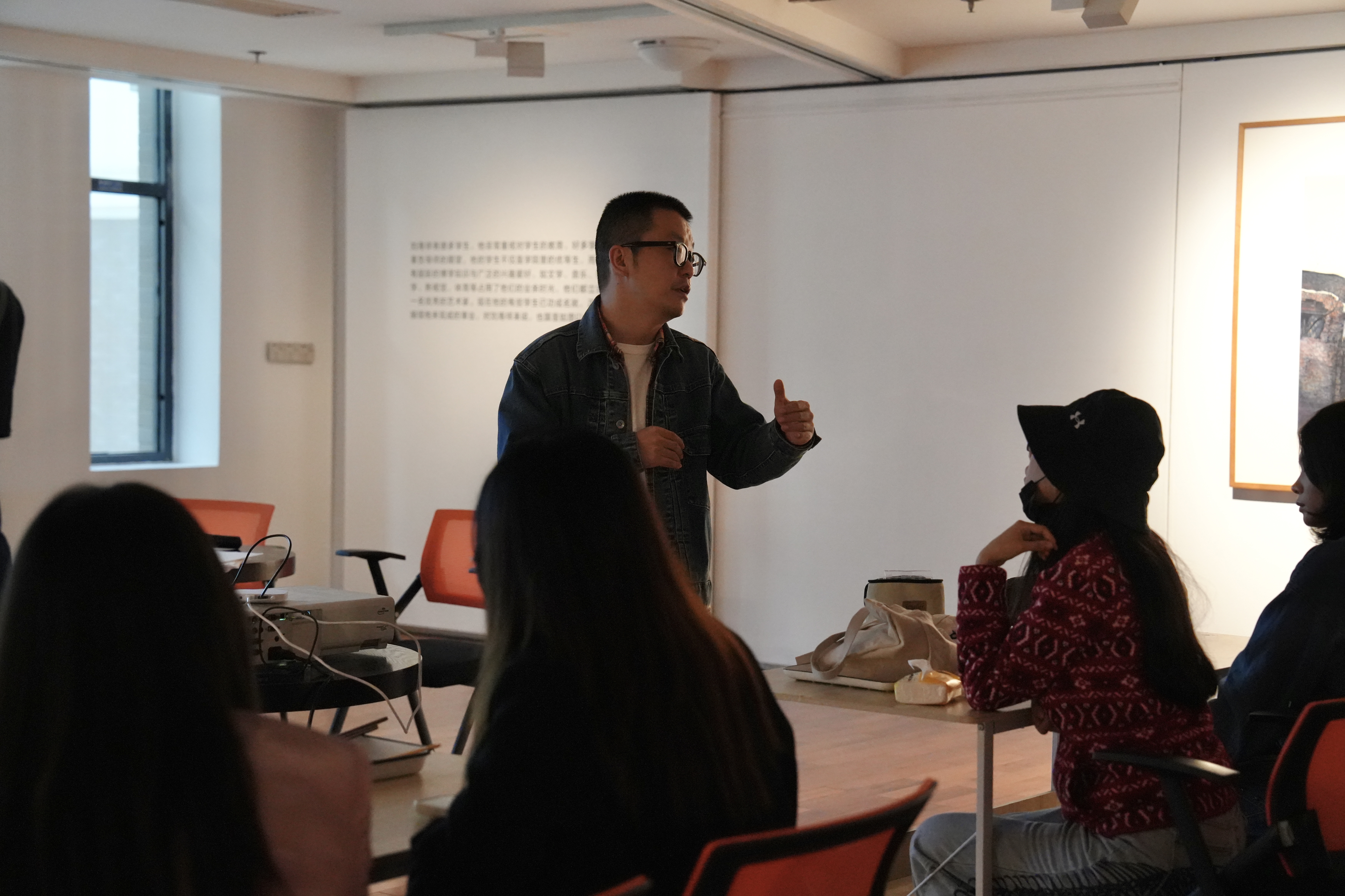 “劉壽祥老師為什么喜歡運(yùn)用丙烯這些材料?”鄧涵教授邊演示邊教導(dǎo),“丙烯不溶于水,會縮短繪畫的時間,也能保留水彩在紙上留下的筆觸,畫面的色層關(guān)系也會更加豐富……”學(xué)生們圍在一起,聚精會神地聆聽著,思路也隨著老師揮灑的筆觸逐漸明朗起來。在同學(xué)們的筆下,或急或緩、或粗或細(xì),各種動勢的線條在不同肌理的紙張上呈現(xiàn)出不同的紋路與走勢。不同大小的筆刷也渲染出濃淡不一的色澤,經(jīng)過馬克筆預(yù)埋的顏色顯露出更莊重的氣韻。水與色的交融產(chǎn)生了奇妙的變奏,同學(xué)們直觀認(rèn)識到,淋漓的水彩在不同的材料和技巧下,能構(gòu)建出極盡優(yōu)美的詩意。這一刻,劉壽祥先生的水彩教育理念在學(xué)生心靈深處悄然發(fā)芽。實(shí)踐出真知。本次公教活動既強(qiáng)化了水彩專業(yè)學(xué)子的學(xué)科理論,也提高了自身水彩創(chuàng)作的技巧,是一次藝術(shù)理論與實(shí)踐學(xué)習(xí)深度融合的學(xué)術(shù)之行。藝術(shù)的傳承需要通過教育與實(shí)踐來實(shí)現(xiàn)。武漢美術(shù)館作為公共文化服務(wù)機(jī)構(gòu),將不斷發(fā)揮自身資源優(yōu)勢,以多形式、多維度的公眾教育,推動藝術(shù)教育普及,為藝術(shù)的傳承和發(fā)展做出積極貢獻(xiàn)。