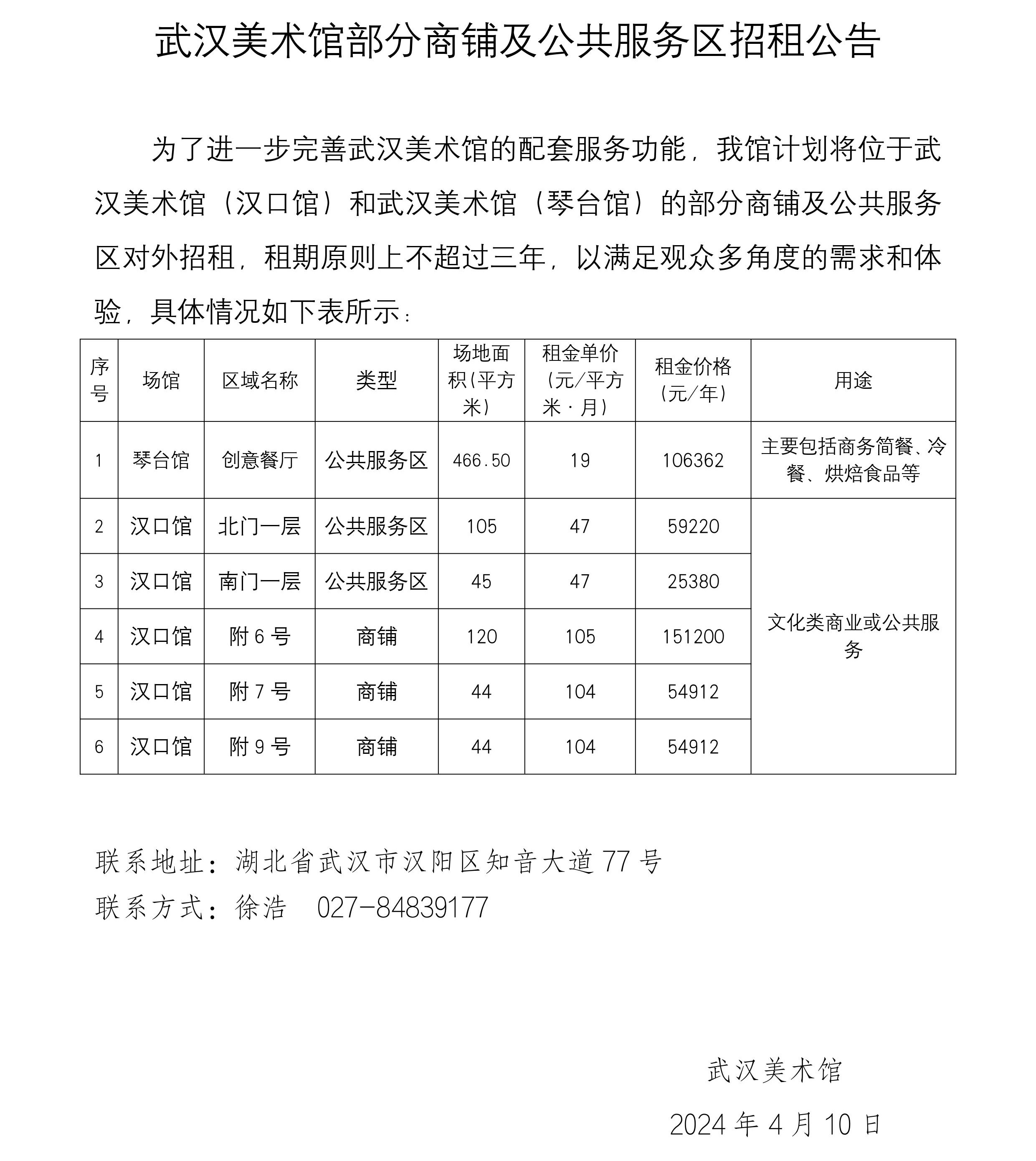 武漢美術(shù)館部分商鋪及公共服務(wù)區(qū)招租公告