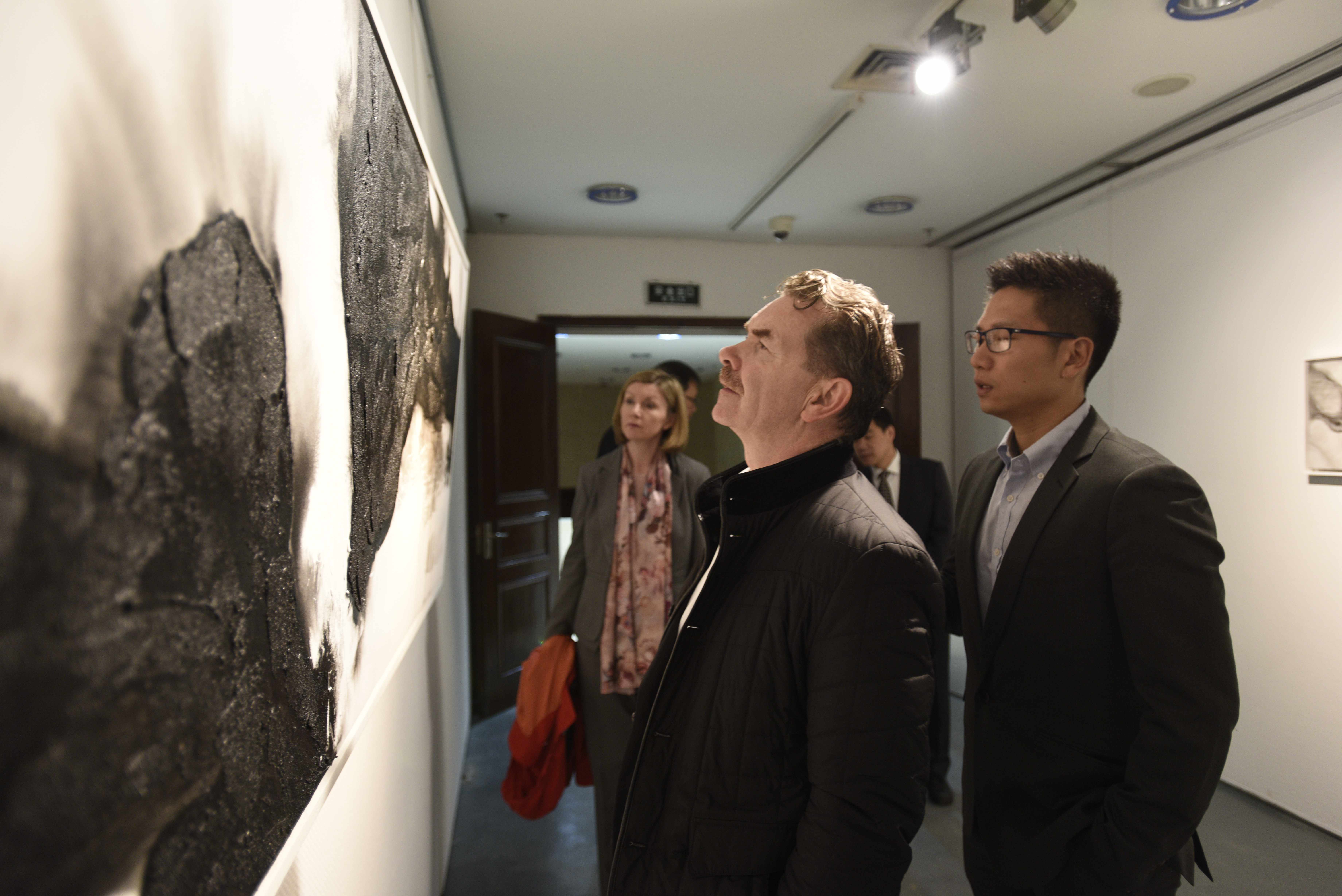 2016年10月24日上午,愛爾蘭阿斯隆理工學(xué)院校長(zhǎng)凱榮·歐·凱恩一行來到武漢美術(shù)館參觀了正在展出的“中國(guó)風(fēng)——王心耀作品展”,武漢美術(shù)館副館長(zhǎng)劉宇、館長(zhǎng)助理宋文翔、藝術(shù)家王心耀陪同參觀。