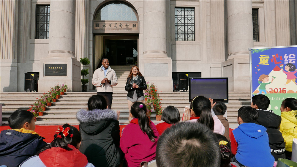 2016年12月28日下午, 武漢美術(shù)館南門口一派熱鬧景象。分別來(lái)自南非和巴基斯坦的李安老師和安娜老師,義務(wù)為50位小朋友們帶來(lái)了一堂國(guó)際公開課。