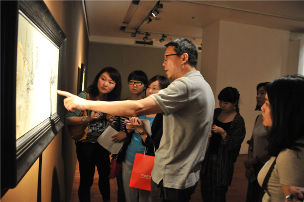 與以往的沙龍活動相比,本次活動加強了藝術(shù)家與觀眾的互動性,一方面是特邀的五位藝術(shù)家與觀眾間的互動,另一方面在主持人的引導下其他出席活動的藝術(shù)家也與觀眾進行了互動,另外,我館還為提問觀眾送出多本參展藝術(shù)家簽名畫冊以作獎勵。這種方式不僅使得現(xiàn)場氣氛更為活躍,最重要的是觀眾可以從多角度對美術(shù)創(chuàng)作有更為深入地認識和理解。