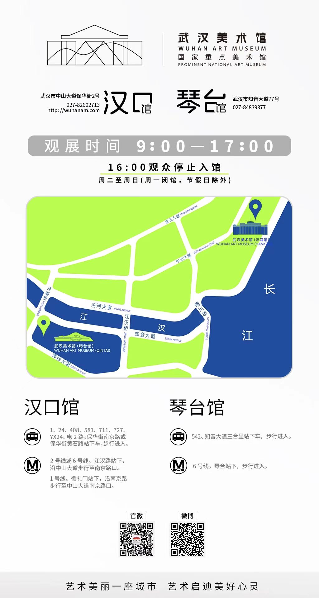 ?武漢美術(shù)館(琴臺(tái)館)位于湖北省武漢市漢陽區(qū)琴臺(tái)中央藝術(shù)文化區(qū),與梅子山隔月湖相望,總建筑面積4.3萬平方米,展陳面積1萬平方米,共5個(gè)展廳,展廳間可分可合,組合方式靈活多變,是一座能充分滿足藝術(shù)展覽、作品收藏、公共教育、文旅服務(wù)的多功能當(dāng)代美術(shù)博物館。