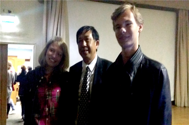長(zhǎng)達(dá)一個(gè)半小時(shí)的講座后,進(jìn)入互動(dòng)環(huán)節(jié),現(xiàn)場(chǎng)的藝術(shù)愛(ài)好者們踴躍發(fā)言,分別提出“中國(guó)畫(huà)有沒(méi)有抽象畫(huà)?”、“中國(guó)畫(huà)好不好學(xué)?”“講座中提到的吳昌碩先生的荷花表達(dá)了怎樣的心境?”、“在中國(guó),‘工筆’與‘寫意’哪個(gè)占主導(dǎo)地位?”等問(wèn)題,樊楓先生均作出了詳細(xì)解答。活動(dòng)結(jié)束后,觀眾紛紛與樊楓先生合影留念并表達(dá)了對(duì)中國(guó)傳統(tǒng)藝術(shù)的喜愛(ài),一名叫索菲亞的小觀眾還特意向樊楓先生贈(zèng)送了兩幅自己的作品,現(xiàn)場(chǎng)氣氛十分友好活躍。