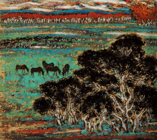 ??? 大山在呼喚著我,我依戀著大山。生活點(diǎn)燃創(chuàng)作的激情,激情推動(dòng)著藝術(shù)的探索,在藝術(shù)實(shí)踐中不斷地去尋求、探索和創(chuàng)造。