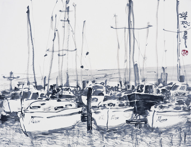 ??? 中國(guó)傳統(tǒng)繪畫語(yǔ)境中的“用筆”強(qiáng)調(diào)“用”的人、“用”的過(guò)程、“用”的方式。三位一體才能生發(fā)出具有文脈價(jià)值的“用筆”二字。這在西方是沒(méi)有的,因?yàn)樗臀鞣剿f(shuō)的“筆觸”完全不同。筆桿細(xì)長(zhǎng)、筆頭層次分明的毛筆作為中國(guó)傳統(tǒng)的書寫與繪畫工具,在一定程度上決定了畫家要充分利用毛筆的“尖”、“腹”、“根”以及筆頭的彈性,有效地控制筆頭攪轉(zhuǎn)并采取“按、摁、扭、轉(zhuǎn)”在宣紙上形成不同的點(diǎn)、線,進(jìn)而組成畫面內(nèi)容。畫家通過(guò)中、側(cè)鋒之運(yùn)筆,畫出“象物”的線條,且不談?dòng)霉P畫出的線條的形體,這些線條的組織與書寫、穿插與速度均可以折射其畫家喜怒哀樂(lè)及其對(duì)事間萬(wàn)物的理解與詮釋。并且隨著中國(guó)畫的發(fā)展,歷代畫家對(duì)于筆、墨、水之間的不斷試驗(yàn),將“線條”的可能性發(fā)揮到最大。以至于梁楷之簡(jiǎn)筆畫中,寥寥幾筆便真意、生氣盡顯!正可謂“真畫一劃,見(jiàn)其生氣。(張彥遠(yuǎn)《論顧陸張吳用筆》)”雖說(shuō)在這類作品中,墨色占據(jù)畫面絕大部分,但在筆與墨的關(guān)系中,筆實(shí)則起主導(dǎo),墨隨筆出。