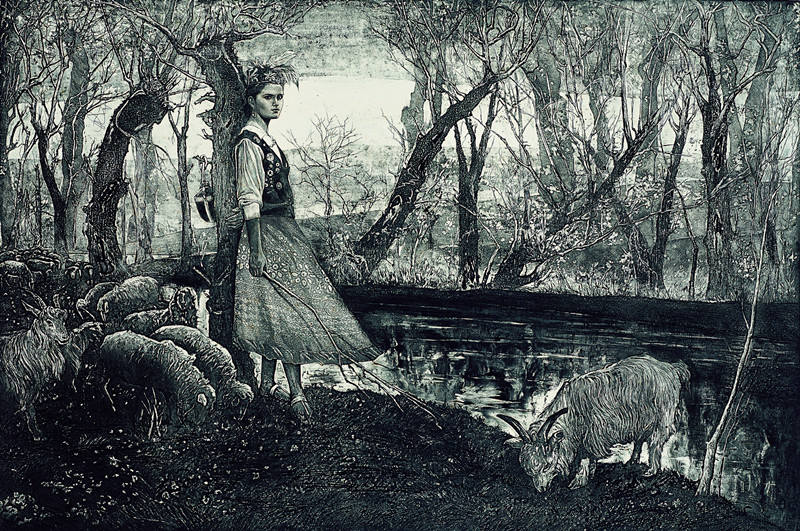 畫家對(duì)于藝術(shù)語言的選擇、探索表現(xiàn)出特定的思想內(nèi)涵和藝術(shù)境界,魏謙著重繼承了現(xiàn)實(shí)主義藝術(shù)優(yōu)秀傳統(tǒng),銅版畫《帕米爾的陽光》中那流暢,蒼勁的線條,幾乎可以感覺到*刀向版而發(fā)出錚錚作響的聲音,以及作者表現(xiàn)塔吉克族人民生活的內(nèi)心沖動(dòng),他的銅版畫,把握生活的韻味和氣勢(shì)的整體效果,注重審美概率的蘊(yùn)蓄,使古老的歐洲傳統(tǒng)銅版畫藝術(shù)顯現(xiàn)出東方的神采。