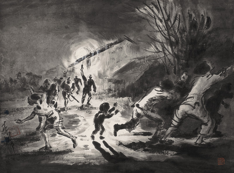 1937年抗日戰(zhàn)爭爆發(fā)后,李樺帶筆從戎,拿起手中的木刻刀參加抗戰(zhàn)軍隊,在第三戰(zhàn)區(qū)任文職軍官。1938年,一身戎裝的李樺同力群、賴少其、王琦等人在武漢共同籌備成立了“中華全國木刻界抗敵協(xié)會”,并擔任理事。八年軍旅生涯,李樺一直未間斷木刻版畫的創(chuàng)作,用手中的刻刀和畫筆投身到抗日救亡的浪潮中。這一時期,李樺的創(chuàng)作取材視野比以前擴大了,其創(chuàng)作的木刻、素描、水墨作品不僅有抗戰(zhàn)題材,還有大量的社會生活題材,如水墨畫《常德門外?清掃戰(zhàn)場》、《清明時節(jié)》、《幽居》等作品都富有濃郁的社會人文關懷,他用實地寫生的方式,讓人們看到在戰(zhàn)時底層農民艱苦生活的狀態(tài)。雖然這些作品歷經戰(zhàn)火,大部分已經遺失,現(xiàn)在只剩下二十余件,但正是這些精彩的水墨畫打破了以往人們對李樺藝術創(chuàng)作相對單一的認識,它們更加豐富而又立體地呈現(xiàn)出李樺這一階段的藝術創(chuàng)作。