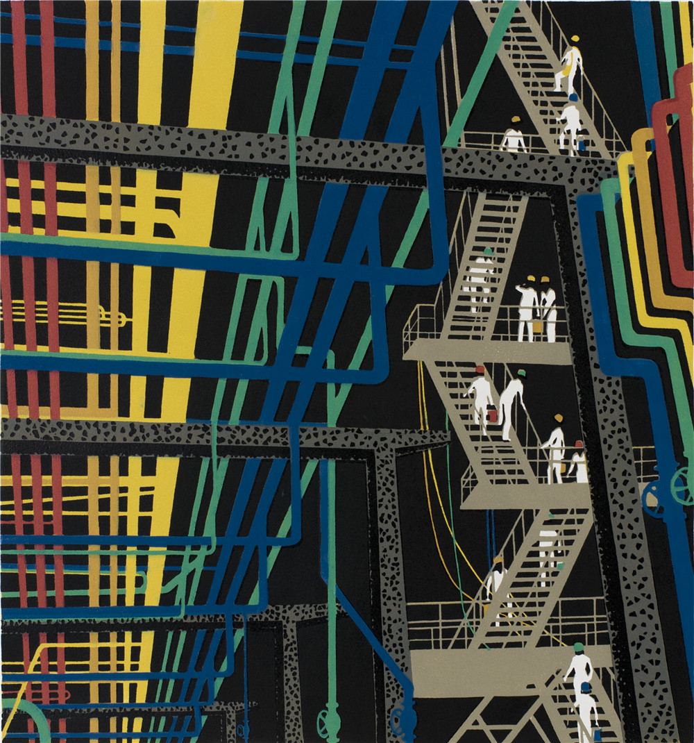 在我國(guó)豐富多彩的珍貴美術(shù)文化遺產(chǎn)中,工業(yè)版畫是一個(gè)十分獨(dú)特的品種和類型,《人民畫報(bào)》曾評(píng)論說(shuō),“中國(guó)工業(yè)版畫是伴隨著新中國(guó)的社會(huì)、政治、經(jīng)濟(jì)、文化的發(fā)展歷程而成長(zhǎng)起來(lái)的特殊畫種”。新中國(guó)成立之初,為推進(jìn)新中國(guó)經(jīng)濟(jì)生產(chǎn),大規(guī)模的工業(yè)建設(shè)開始在全國(guó)各地開展,由此,我國(guó)第一座綜合性大型鋼鐵聯(lián)合企業(yè)——武漢鋼鐵集團(tuán)公司于1958 年建成投產(chǎn)。在熱火朝天的鋼城熔爐中,在激情燃燒的建設(shè)氛圍里,全國(guó)各地大批專業(yè)版畫工作者深入建設(shè)前沿和工業(yè)現(xiàn)場(chǎng),用畫筆和刻刀見(jiàn)證并記錄著祖國(guó)興盛之路,創(chuàng)作了許多反映工業(yè)生活和建設(shè)風(fēng)貌的版畫作品,工業(yè)版畫創(chuàng)作蔚然成風(fēng),成為美術(shù)文化遺產(chǎn)中獨(dú)特而珍貴的內(nèi)容。