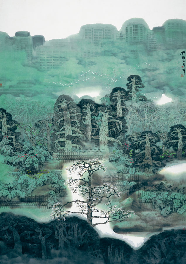 1. 城市系列作品主要有兩部分組成,一部分為樊楓的獲獎作品及其他代表作,如:《綠色家園》、《梅水》、《滿庭芳》、《俯城一、二、三》、《九派云》、《寫意江城》、《極目楚天舒》等;另一部分為近年創(chuàng)作的作品,如:《日暮鄉(xiāng)關》、《江南春雨》、《江城驟雨圖》、《淡去的光影》、《托斯卡納艷陽下》等。