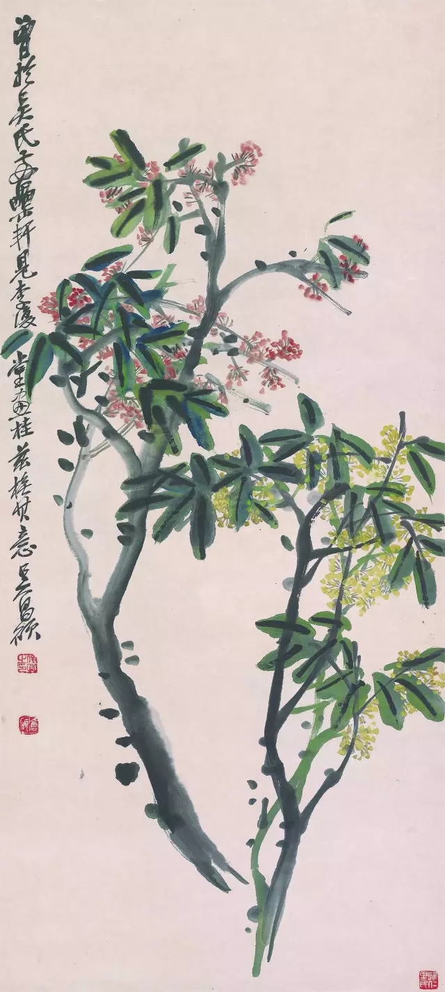????? 吳昌碩是二十世紀(jì)初中國(guó)書(shū)畫(huà)的集大成者,也是在書(shū)畫(huà)印以及詩(shī)文諸領(lǐng)域齊頭并進(jìn)、開(kāi)宗立派的人物。吳昌碩的出現(xiàn),改變了以往中國(guó)書(shū)畫(huà)的筆法傳統(tǒng),他以更加個(gè)性化的筆法來(lái)改造傳統(tǒng)書(shū)畫(huà)印,使作品表現(xiàn)出一種陽(yáng)剛、渾厚的審美意境??梢哉f(shuō),吳昌碩的“金石入畫(huà)”、“古人為賓我為主”、“苦鐵畫(huà)氣不畫(huà)形”等實(shí)踐和理論主張影響和啟發(fā)了后來(lái)的齊白石、黃賓虹、潘天壽、沙孟海等一大批中國(guó)書(shū)畫(huà)的實(shí)踐者,時(shí)至今日,吳昌碩依然是后來(lái)者不斷學(xué)習(xí)和研究的對(duì)象。