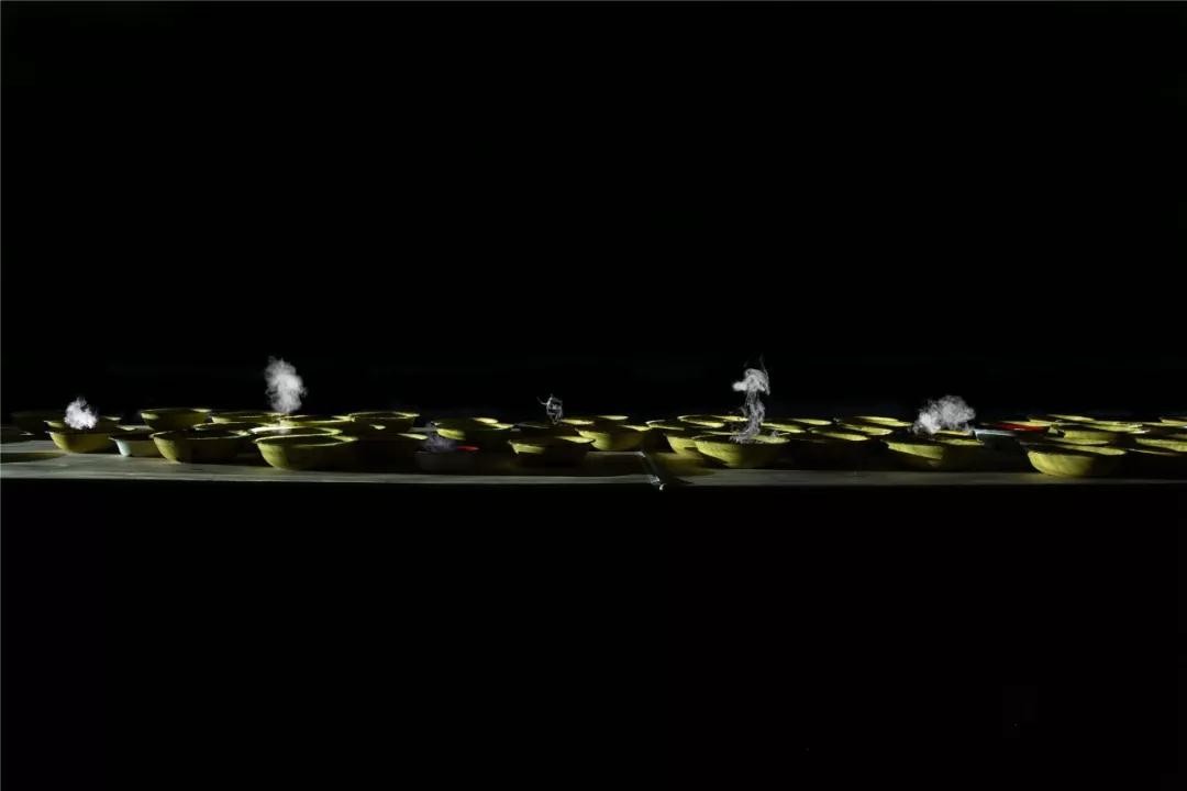 同時在展廳頂部安置水箱,水箱里的水是我從長江里取過來的。滴落的江水,在與飯盆接觸的瞬間蒸發(fā)成氣體,現(xiàn)場彌漫著長江的味道。