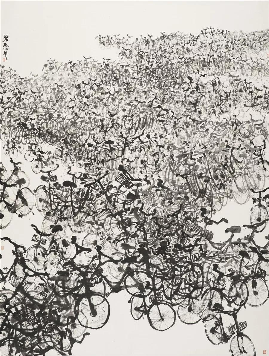 △新自行車王國之一 紙本水墨 250×190cm 2017年