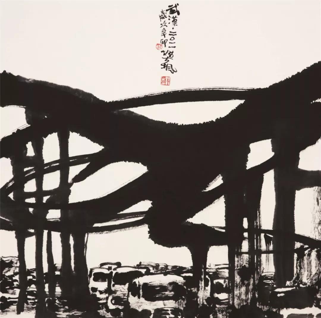 據(jù)樊楓自己介紹,在作畫之前,他總會不斷地在頭腦中“過電影”,直到產(chǎn)生一種意象、一種感覺,他才會進入創(chuàng)作的狀態(tài)。意即每當(dāng)作畫時,他從不會像一些寫實類水墨畫家那樣或者先畫素描稿,或者以毛筆去臨摹照片,而會根據(jù)不同的心境、不同的體驗與不同的情感去進行即興性的藝術(shù)表達。由于偶然性與隨機性的因素總會起到十分重要的作用,于是,筆墨的表現(xiàn)也顯得自然而然。具體的說,在作畫之初,他總會聽任畫筆在宣紙上隨意畫出第一個來到心中的形象。接下來,他則會以這個形象與畫面效果為機遇,直覺地選擇全新的處理方式,而類似的處理又會創(chuàng)造出更新的機遇。如此循環(huán)往復(fù),直至擺弄出很滿意的畫面結(jié)構(gòu)為止。這個過程其實是從A到B,再從B到C,直至無限的過程。就如同一位優(yōu)秀的書法家進行創(chuàng)作一樣,是一氣呵成的,作畫的時間過程也有充分的顯示。當(dāng)然,其基礎(chǔ)是藝術(shù)家對現(xiàn)實的非凡記憶力、想象力與相應(yīng)的筆墨表現(xiàn)力。我還注意到,在面對不同創(chuàng)作時,樊楓常常會從在強調(diào)表達現(xiàn)代視覺感受的前提下,智慧地將傳統(tǒng)山水畫的表現(xiàn)技法加以了當(dāng)代性轉(zhuǎn)化,可謂是皴、擦、點、染;焦、濃、重、淡、輕,無所不用其極。另外還會很好揉入來自西方的平面構(gòu)成法,而這就使他的作品面貌非常多樣,一點也不重復(fù)。相對于那些以西式寫實手法畫出來的、無筆無墨的、近似于黑白素描、黑白抽象畫、黑白表現(xiàn)繪畫的所謂“都市水墨”,他的作品不知要高出多少。聯(lián)系樊楓的作畫過程稍加分析,我們便能體會到:這位執(zhí)著的藝術(shù)家在本質(zhì)上一直強調(diào)的是讓畫面自然生長,也正因為如此,他的創(chuàng)作雖然長期處理的是同一主題,不但一點也不重復(fù),反而還屢有新意,令人嘆為觀止!樊楓給我們的巨大啟示是:簡單的重復(fù)傳統(tǒng)與拋棄傳統(tǒng)都是不足為取的。因為一味重復(fù)傳統(tǒng)只會令傳統(tǒng)失去生命力;反過來看,只有結(jié)合新的藝術(shù)問題,并在傳統(tǒng)的基礎(chǔ)上再造傳統(tǒng),即在觀察與表現(xiàn)的過程中,想辦法把古代的“游觀”法、筆墨表現(xiàn)法等等當(dāng)代化才是最好的方案。在前面我曾經(jīng)講了“游觀”與筆墨思維的問題。我認(rèn)為,在真正專業(yè)的人士那里,這兩者應(yīng)該是同一的。理解了這一點,藝術(shù)家在觀察生活的過程中就會成功地把三維的自然對象轉(zhuǎn)化成二維的筆墨結(jié)構(gòu),而不是為了適應(yīng)西式的寫實標(biāo)準(zhǔn),犧牲筆墨表現(xiàn)力。