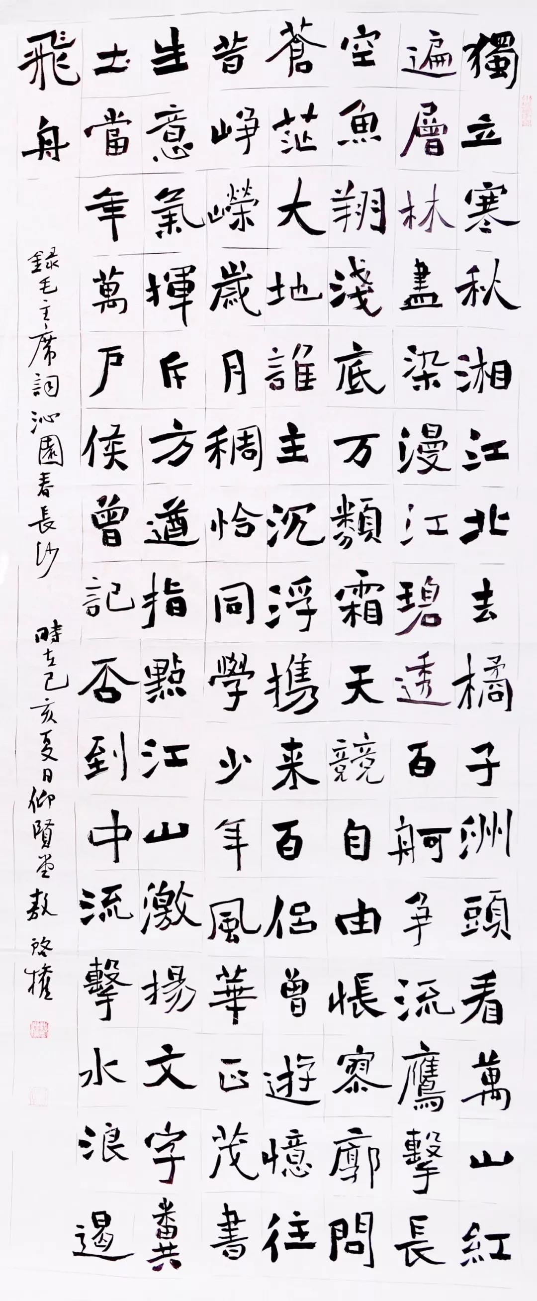 漢水橫沖,獨(dú)抒靈襟。書(shū)法藝術(shù)伴隨著中華文明史的發(fā)展走過(guò)了漫長(zhǎng)的歷程,書(shū)法創(chuàng)作成為書(shū)家心靈世界的展現(xiàn)。“天地萬(wàn)物之變動(dòng),可喜可愕,一寓于書(shū)”。書(shū)法藝術(shù)和書(shū)寫者的人格性情就是這樣緊鑲密嵌地成一個(gè)整體。今年的“書(shū)寫大武漢”以“輝煌七十載,筑夢(mèng)新時(shí)代”為主題,突出了群眾參與、記錄時(shí)代、書(shū)寫歷史的顯著特點(diǎn)。書(shū)法家們以書(shū)法銘記城市生命的年輪,書(shū)香伴隨著時(shí)代一起奮進(jìn),作品表現(xiàn)出的意境情趣和審美靈性無(wú)不集中反映了大開(kāi)大闔敢為人先的宏大氣象,不勝不休追求卓越的精神風(fēng)貌。