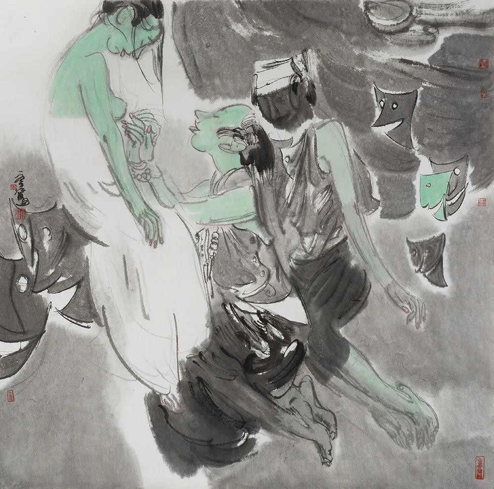 本次參展的六位藝術(shù)家亦均深受此變革之影響,但同時他們也保持著鮮明的個人特點(diǎn),用更敏銳的視角和時代思維開拓水墨人物畫的新境界,他們對當(dāng)下人類的生存、文化、精神、自然等問題進(jìn)行深入挖掘,在重新審視傳統(tǒng)語言的基礎(chǔ)上,尋求當(dāng)代文化語境的表現(xiàn)手法,作品顯示出更強(qiáng)的時代氣息。