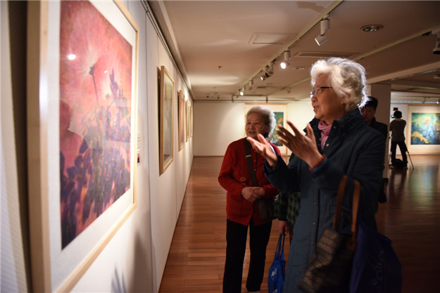 “我亦花來花亦我,夢幻花間,結(jié)伴和春駐”。 這是畫家龔華婭百花作品集中的詩句, 表達了她二十多年求道丹青, 追求畫外之味, 象外之意, 景外之趣的有聲畫, 無聲詩。本次展覽展出了她創(chuàng)作的重彩畫百花作品近60幅,彩墨華滋,生氣沛然,每幅畫都配上她自己寫的詩詞,行云流水,詩情畫意。使人感覺如沐浴春天的陽光,既天性又充滿變化。