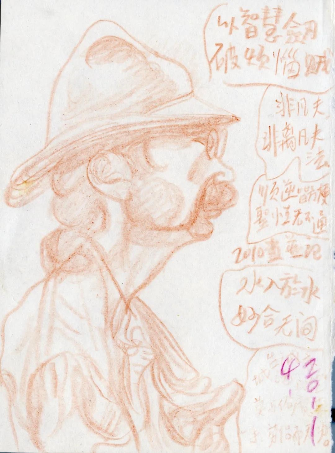 就藝術(shù)本體而言,水墨人物及藝術(shù)創(chuàng)作的諸多問(wèn)題,三位先生已在筆記中作了非常全面細(xì)致的論述,就文化與時(shí)代這一課題,筆記中也有許多值得我們“見賢思齊”的地方。觀者可以通過(guò)閱讀先生們的筆記獲得解讀他們作品的密碼,同時(shí)也可以了解作者之心境,了解畫作之意境。宋人鄭樵有文:“置圖于左,置書于右,索象于圖,索理于書”,希望讓觀者可以由“藝術(shù)筆記”為切入點(diǎn),從而去了解水墨人物創(chuàng)作,了解傳統(tǒng)文化及作品所體現(xiàn)出的時(shí)代情愫。