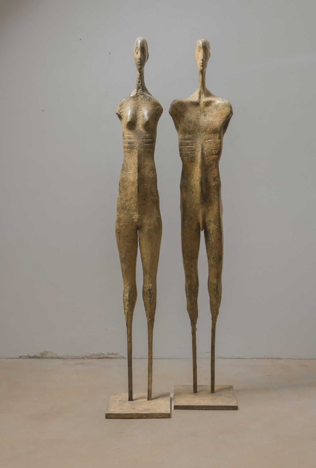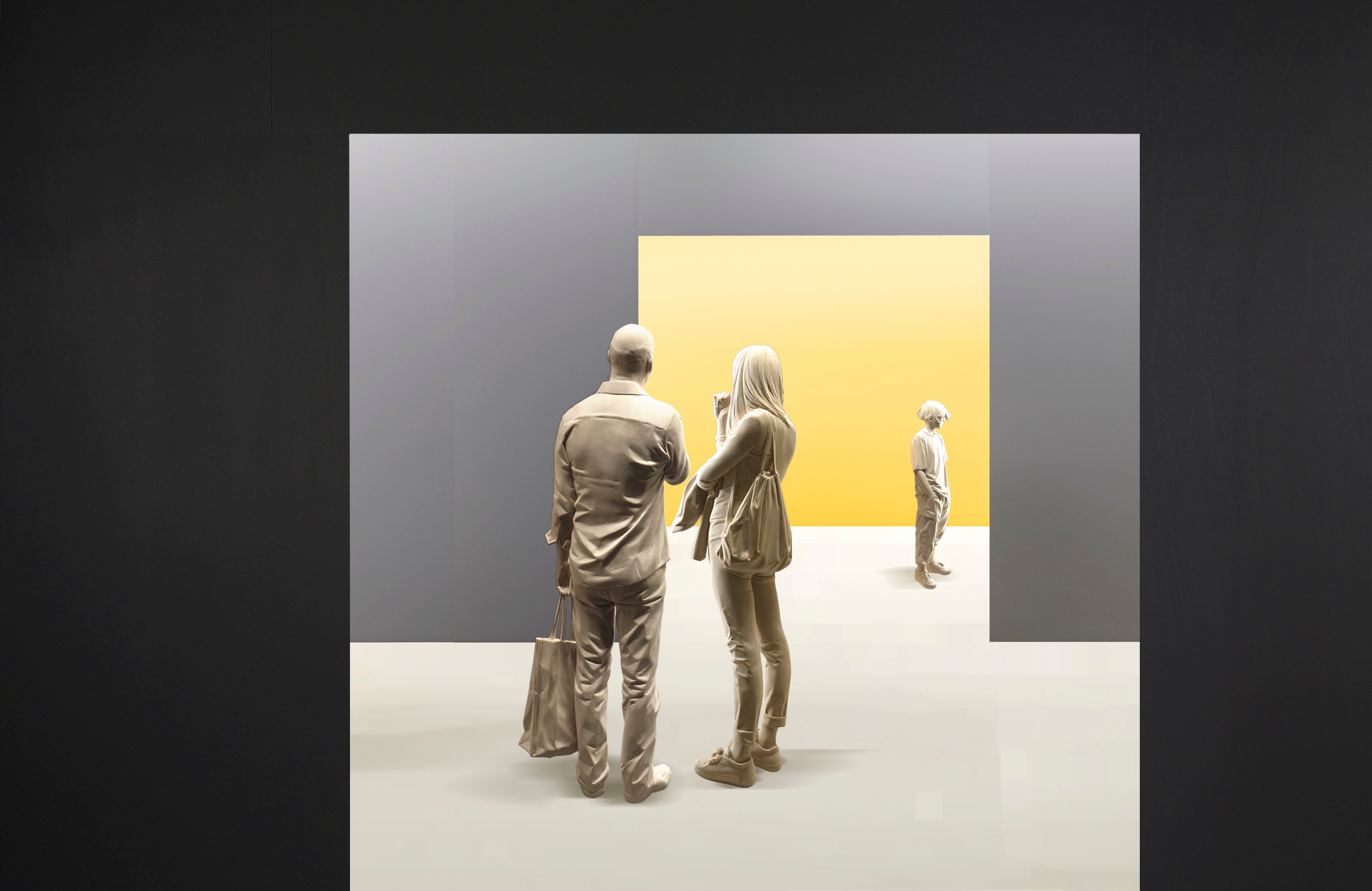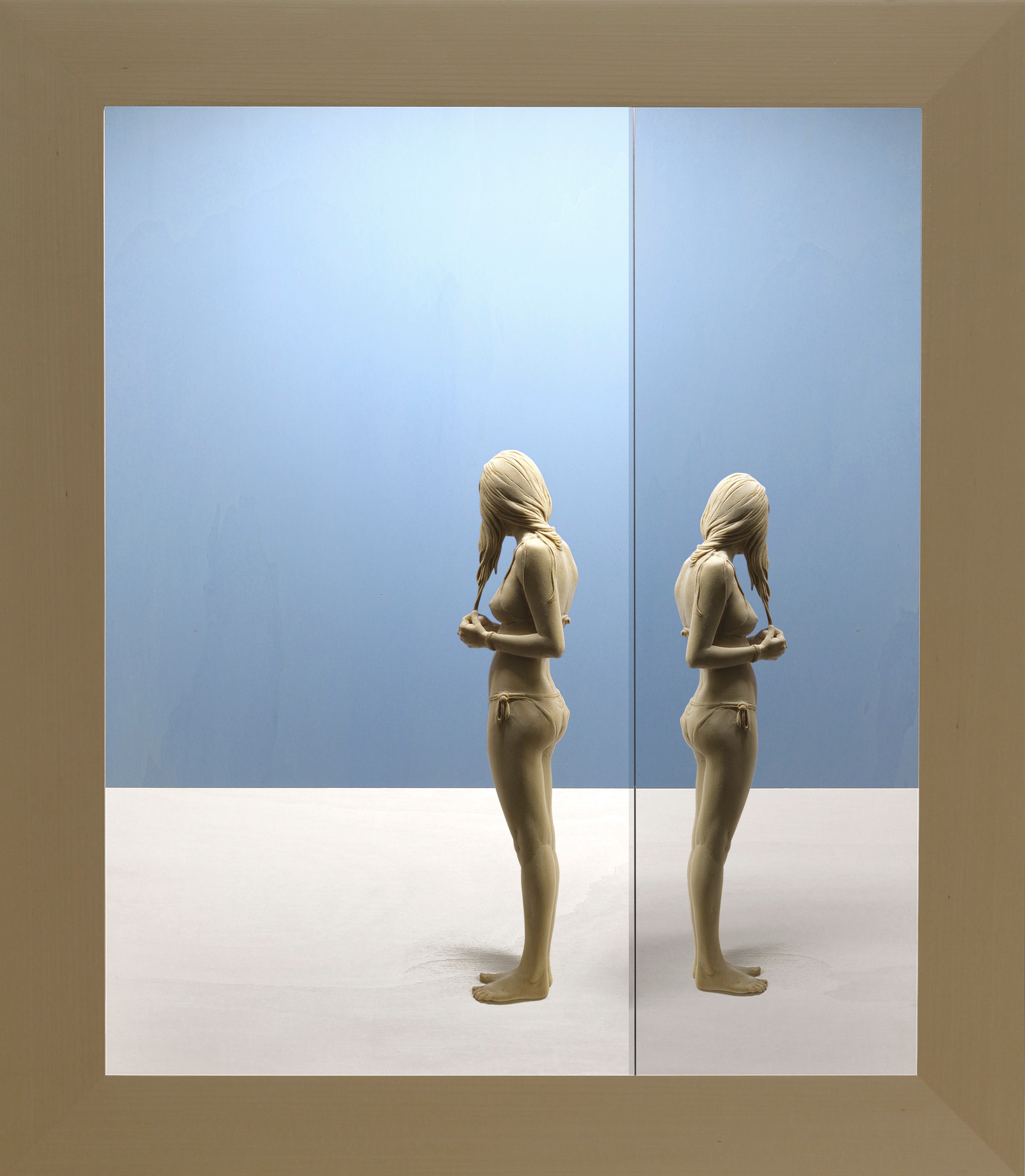 ? 顯然,在他們有關(guān)“人”的作品中很難發(fā)現(xiàn)如容?馬克(Ron Mueck)、馬克?奎恩(Marc Quinn)那樣巨大的,超出人們的觀看經(jīng)驗數(shù)倍的雕塑,多數(shù)是以真人大小的尺寸制作;同時,也能注意到不同的人物作品的眼睛看向的多是不確定的前方,并以此傳遞出藝術(shù)家們復(fù)雜、多樣的內(nèi)心世界。我們希望通過這些作品讀取更多的信息,但語言的表述無法替代與其面對面的共處,只在無焦點的凝視間,體會直指人心的情感流動,以及引人駐足的雕刻技術(shù)。