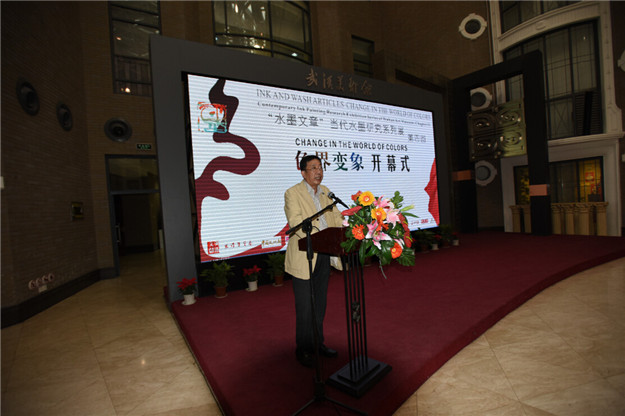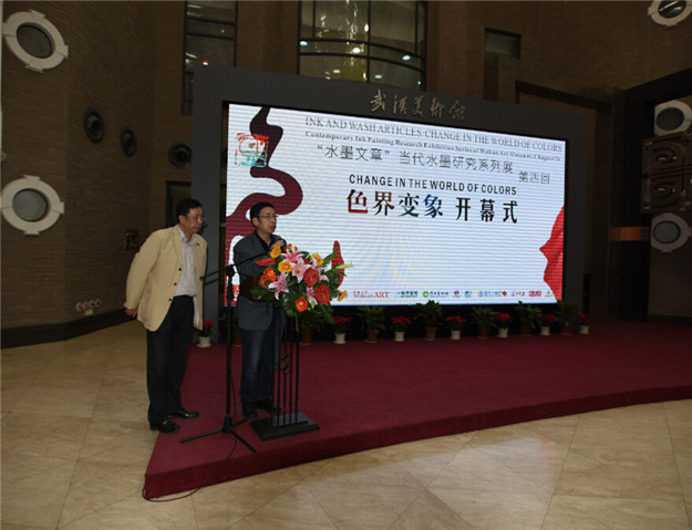 我館自主策劃的品牌展覽《水墨文章——色界變象 當(dāng)代水墨研究系列展第四回》于4月24日下午在武漢美術(shù)館開幕,《色彩中國:中國畫中的色彩觀》研討會亦如期舉辦。策展人、中央美術(shù)學(xué)院教授、《美術(shù)研究》執(zhí)行主編殷雙喜,參展藝術(shù)家羅平安、鐘孺乾、陳向迅、侯黎明、胡偉、徐累、金沙,華南師范大學(xué)教授、理論家皮道堅,中央美術(shù)學(xué)院繼續(xù)教育學(xué)院院長王書杰。原湖北省文聯(lián)主席、藝術(shù)家周韶華,湖北著名藝術(shù)家魯慕迅等嘉賓出席了本次活動。