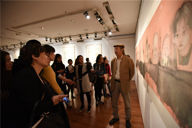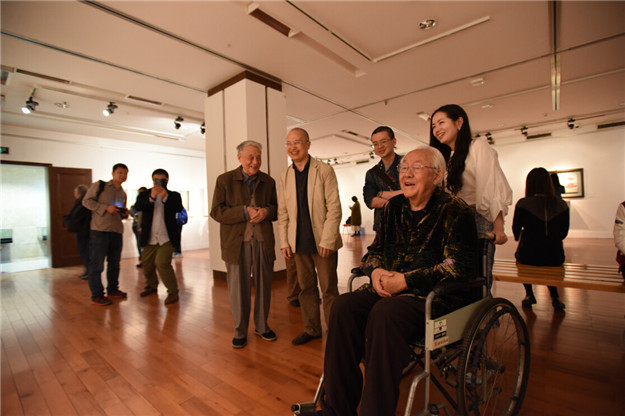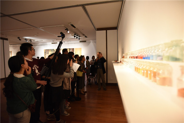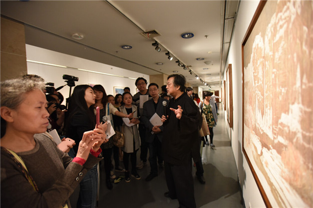 開幕式結(jié)束后,策展人及到場的參展藝術(shù)家在展廳內(nèi)與現(xiàn)場觀眾進(jìn)行互動,為其導(dǎo)覽本次展覽作品,解答水墨藝術(shù)方面的問題。