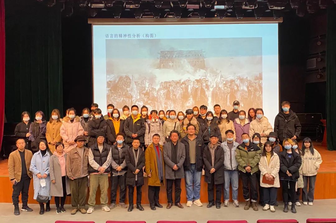 張江舟先生還結(jié)合中西方經(jīng)典作品深刻闡釋了藝術(shù)語(yǔ)言的精神性。他強(qiáng)調(diào)中國(guó)繪畫(huà)藝術(shù)始終以寫(xiě)意為核心,并根據(jù)自身的創(chuàng)作體會(huì)和經(jīng)驗(yàn),結(jié)合理論與具體的中外藝術(shù)家創(chuàng)作案例進(jìn)行詳細(xì)闡述,從構(gòu)圖、造型、筆墨、色彩四個(gè)方面,深刻分析了繪畫(huà)語(yǔ)言和精神內(nèi)在的和諧關(guān)系。