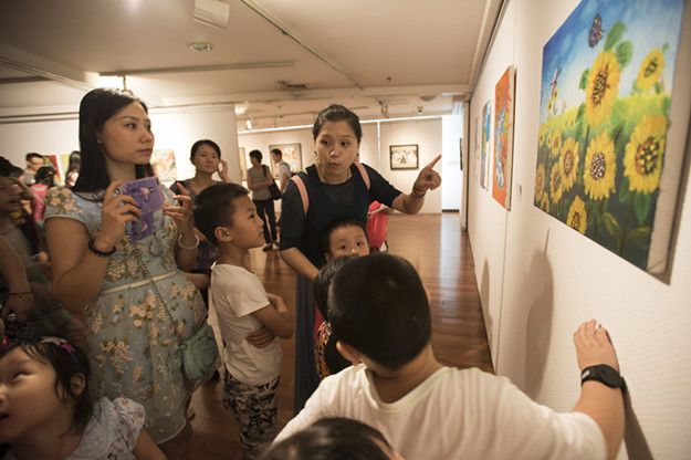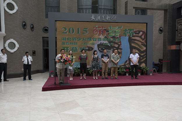 5月31日下午2點30分,由武漢美術(shù)館、湖北省少兒美術(shù)工作室聯(lián)盟聯(lián)合主辦的“萌芽杯”湖北省少兒視覺藝術(shù)展開幕式在美術(shù)館中庭舉行,出席開幕式活動的全國少兒美術(shù)工作室聯(lián)盟主任左志丹、武漢美術(shù)館副館長劉宇、江漢大學藝術(shù)學院副院長夏金鐘、武漢市美術(shù)教研員蔡穎瑩、全國少兒美術(shù)工作室聯(lián)盟副主任熊漢強等嘉賓相繼致辭,嘉賓們對本次參展的少兒作品給出了很高的評價,也對本次萌芽展成功舉辦致以熱烈的祝賀,并祝所有的孩子們六一節(jié)快樂。開幕式之后由周逸飛老師為現(xiàn)場的孩子們解讀本次展覽的優(yōu)秀作品,讓孩子們過一個充實的六一兒童節(jié)。