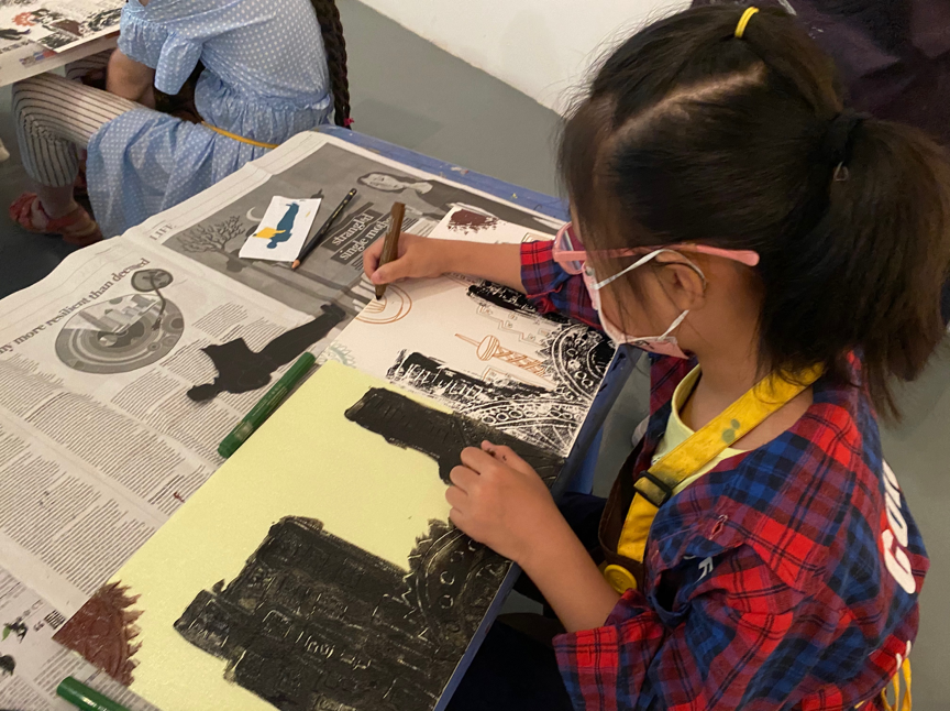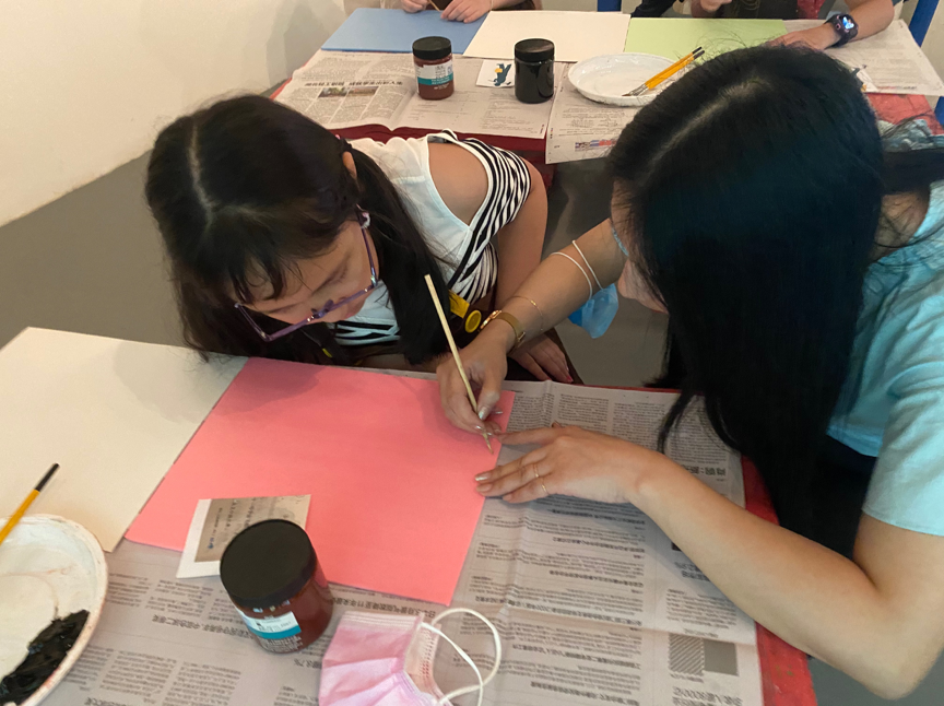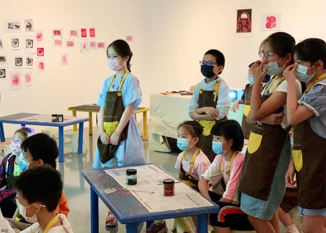 ? ? ? ? 武漢美術(shù)館暑期公教活動(dòng)少兒粉印版畫—工業(yè)時(shí)代的現(xiàn)場(chǎng)課前,這群可愛的“小藝術(shù)家”們就迫不及待滴想要嘗試一下奇妙的粉印版畫工具。由于制作粉印版畫需要使用到小竹簽等帶有尖頭的工具,我們的老師細(xì)心提醒“小藝術(shù)家”們?cè)趧?chuàng)作過程中需要注意安全?;顒?dòng)結(jié)束后,小朋友們帶著自己的作品和歡快的心情,在展廳的展示區(qū)一起合影留念。