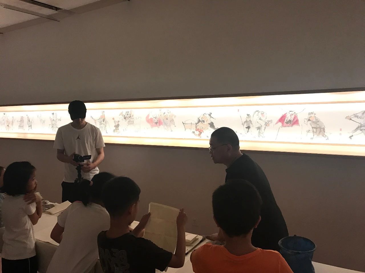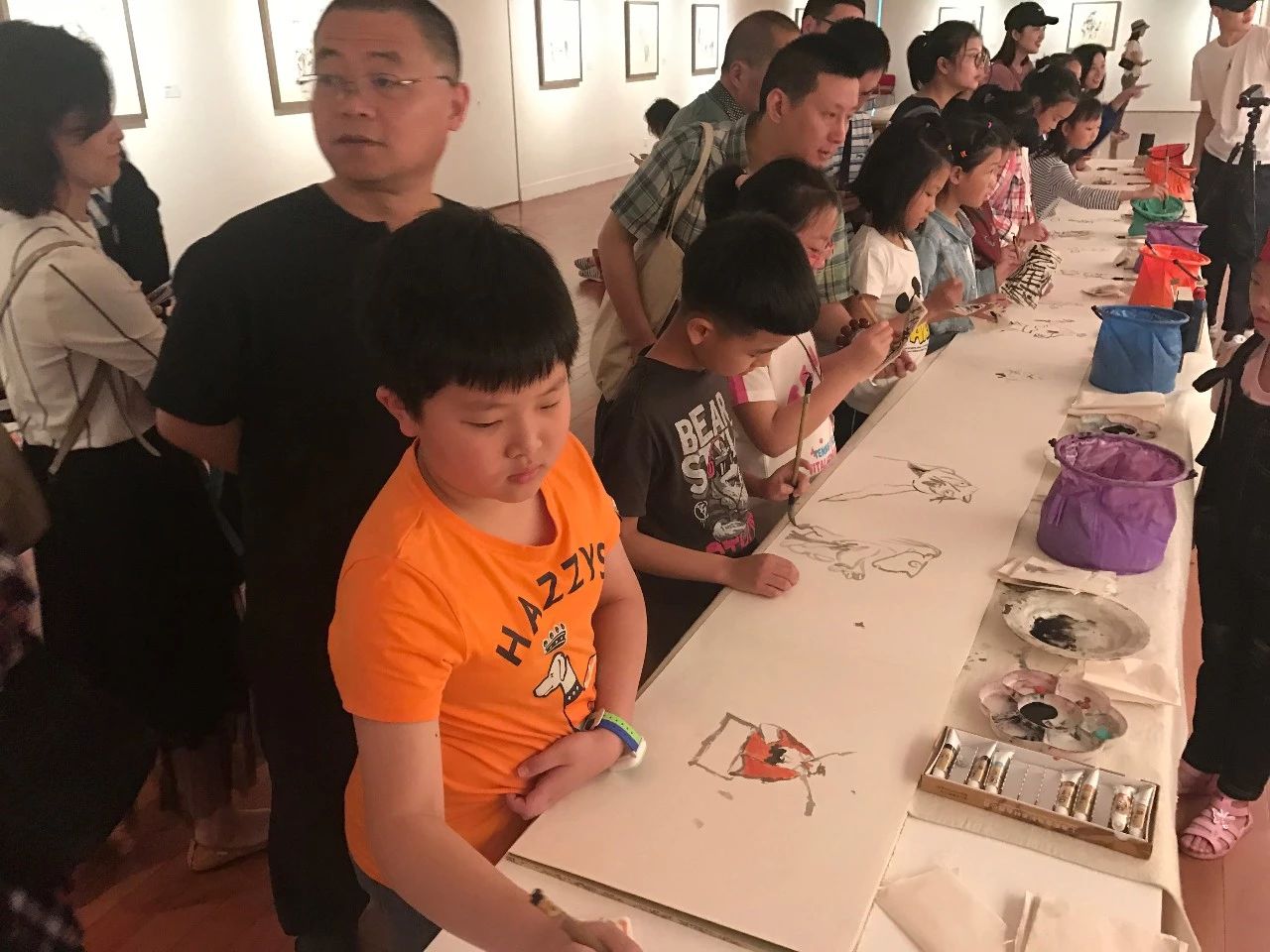 ? ? ? ? ?2018年4月20日至5月13日,中南民族大學(xué)美術(shù)學(xué)院院長羅彬教授的“入戲—羅彬水墨人物畫展”在武漢美術(shù)館成功舉辦。此展展出的70余件作品以戲入畫,畫中有戲,得到很多武漢市民的追捧和喜愛。臨近展覽落幕之際,為了讓武漢廣大市民更好的感受水墨的魅力,5月13日周日上午,我館又精心策劃組織了一場兒童水墨特色公教活動——《向羅彬教授學(xué)畫戲》。
