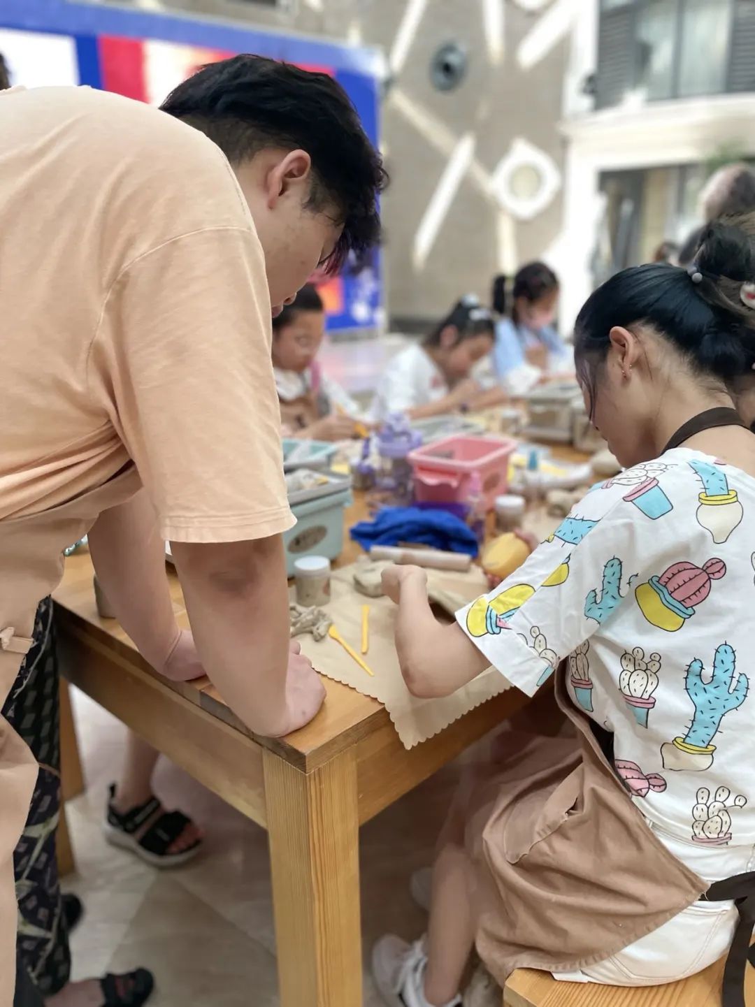 ? ? ? ? 2022年,武漢美術(shù)館持續(xù)履行美育推廣職能,圍繞展覽主題、藝術(shù)形式、傳統(tǒng)與創(chuàng)新等方面定制暑期主題公教活動(dòng),架起生活與藝術(shù)的橋梁,拉近廣大觀眾與藝術(shù)的距離。今年開(kāi)展的暑期“美藝坊——陶藝系列公教活動(dòng)”以上半年的兩場(chǎng)雕塑大展為思考原點(diǎn),以創(chuàng)造、實(shí)踐的形式,試圖將創(chuàng)作的精神內(nèi)涵傳遞給觀眾。這一系列公教課以陶器的基礎(chǔ)知識(shí)、成型原理和制作技法為脈絡(luò),面向各年齡段觀眾開(kāi)發(fā)不同階段的課程,從耳聽(tīng)、眼觀再到手作,帶領(lǐng)觀眾體會(huì)制陶過(guò)程中的樂(lè)趣。